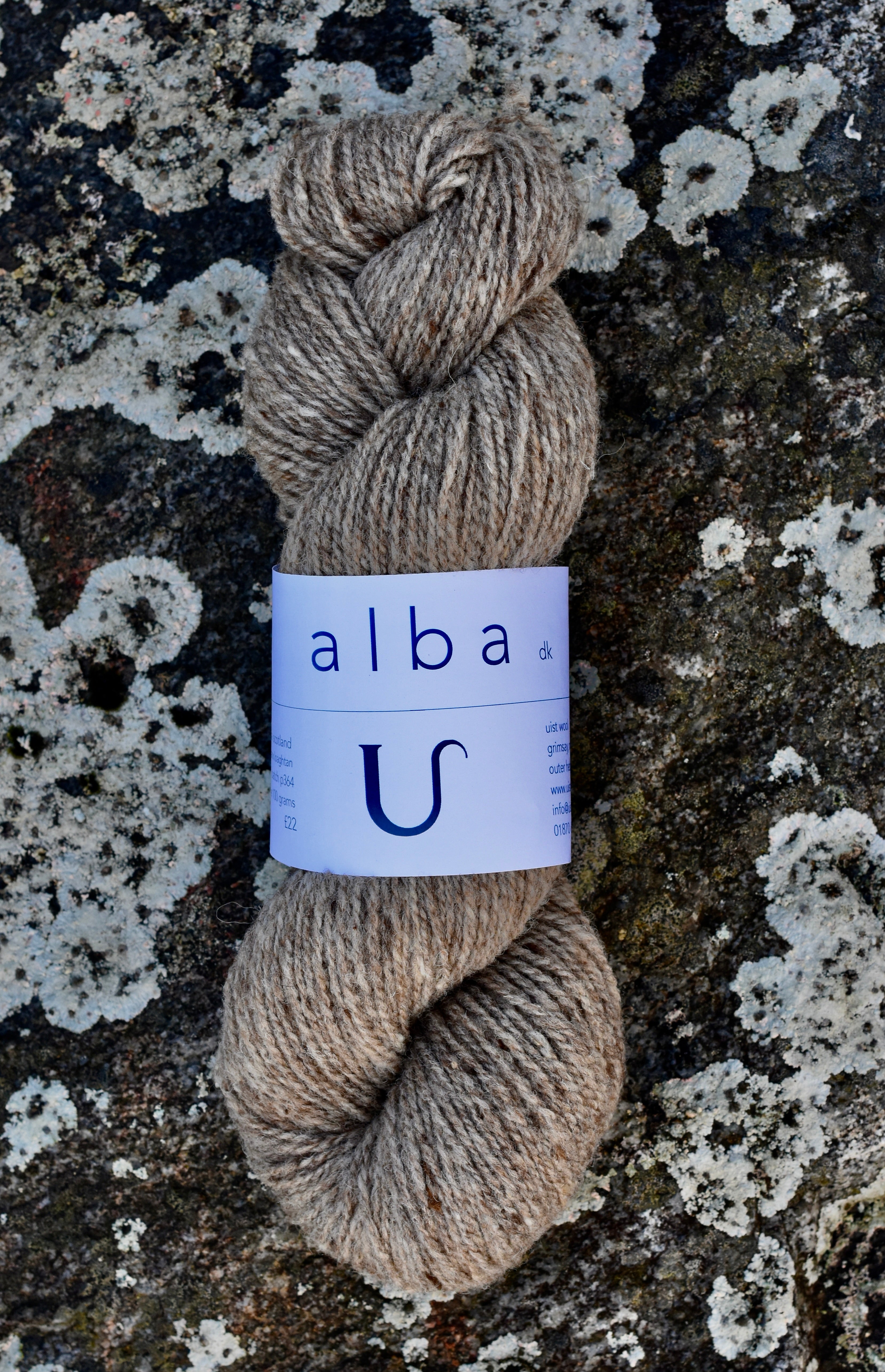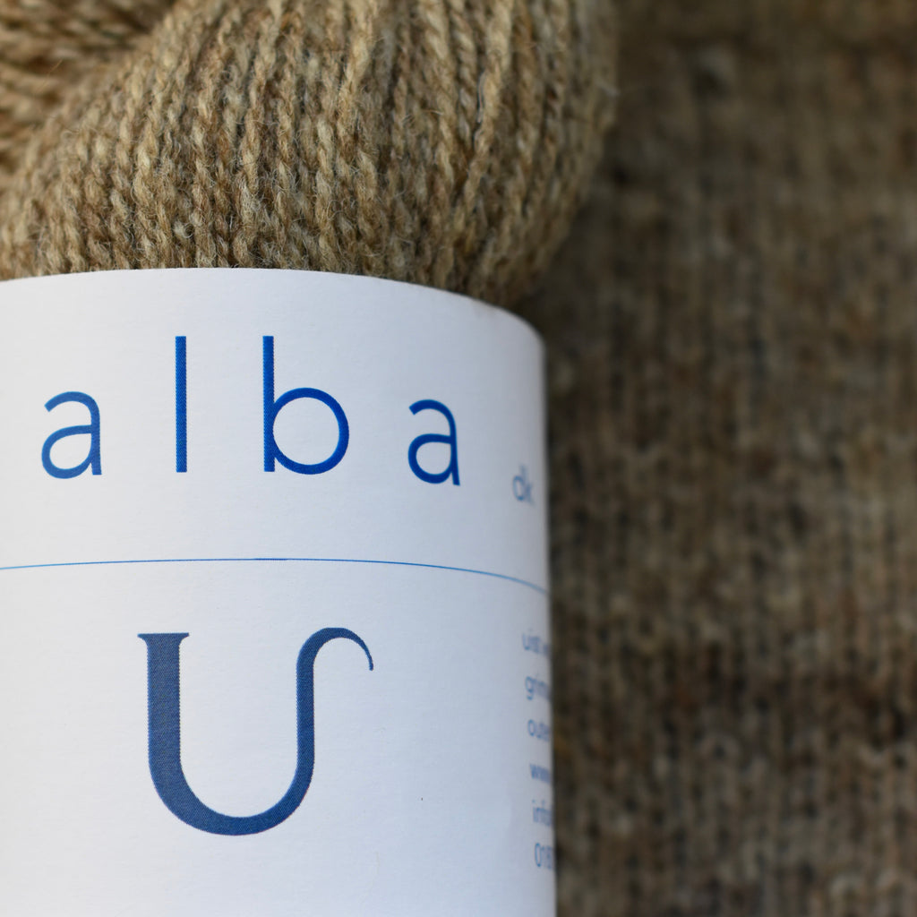 A welcome return to the Uist Wool family of tonal DK yarns, Alba blends classic natural creamy Lleyn with bursts of auburn and copper provided by Soay and Manx Loaghtan. Alba is a very special yarn as we only get small amounts of Soay & Manx Loaghtan each year.  The 2025 batch is a hint darker than our original blend but gives a caramel oaty biscuit tone that's magically pleasing to the senses.