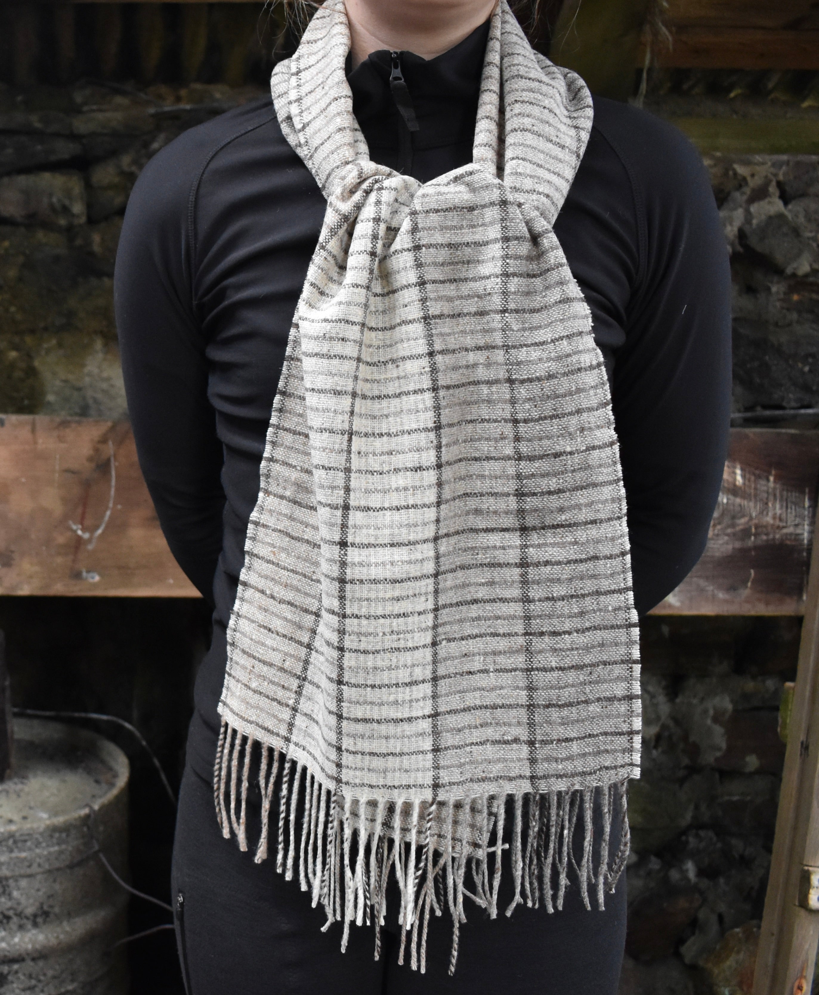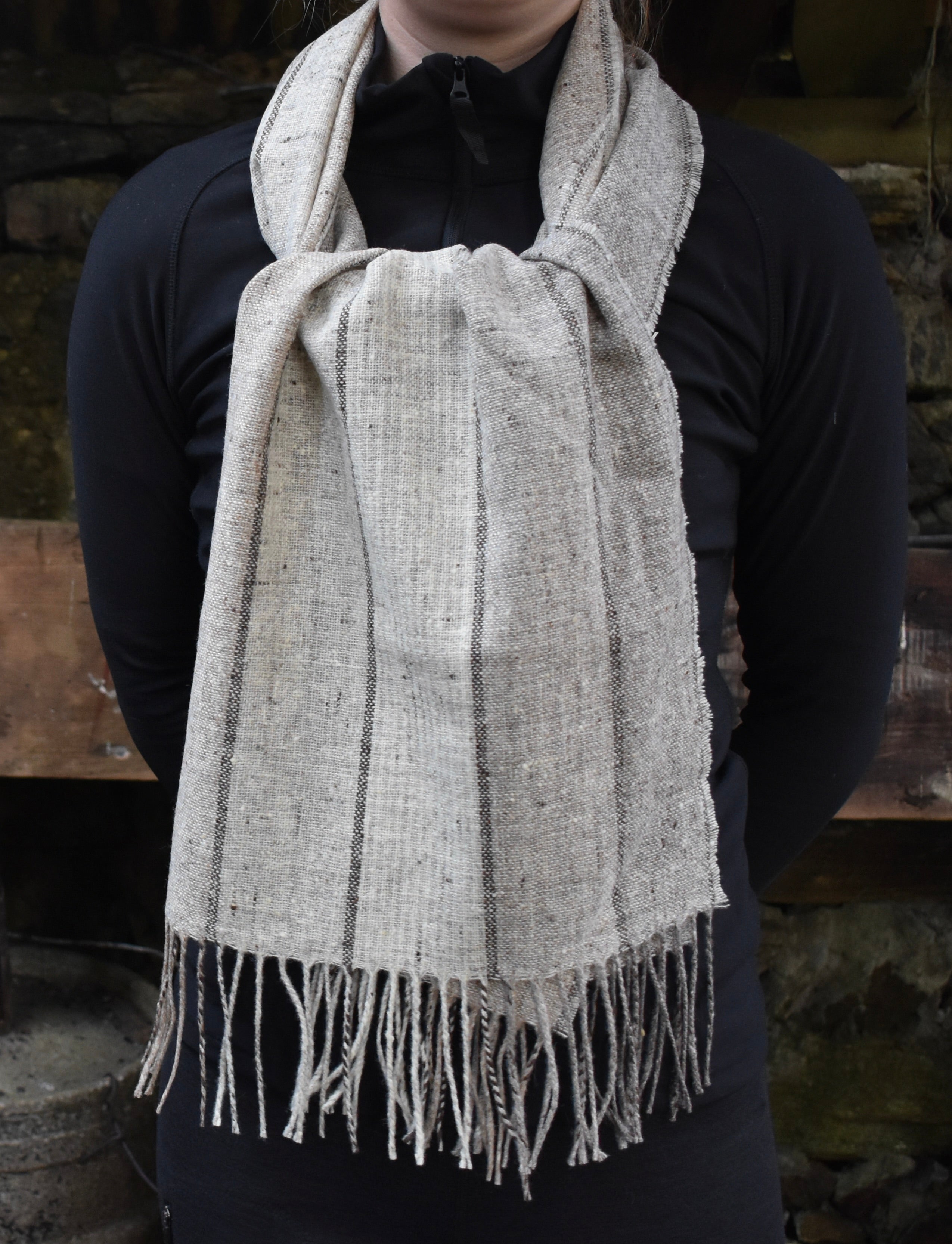 Luxuriously simple and lightly woven with elegant drape and soft warmth. This narrow scarf in Scottish Merino has more than one amazing story to tell: A rare breed wool farmed in Aberdeenshire, spun in the Outer Hebrides by Uist Wool and woven in Speyside by Woven in the Bone. A truly artisanal Scottish product with provenance.