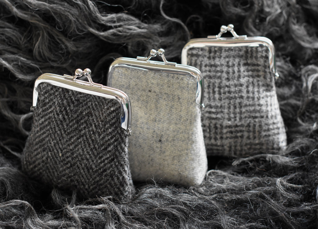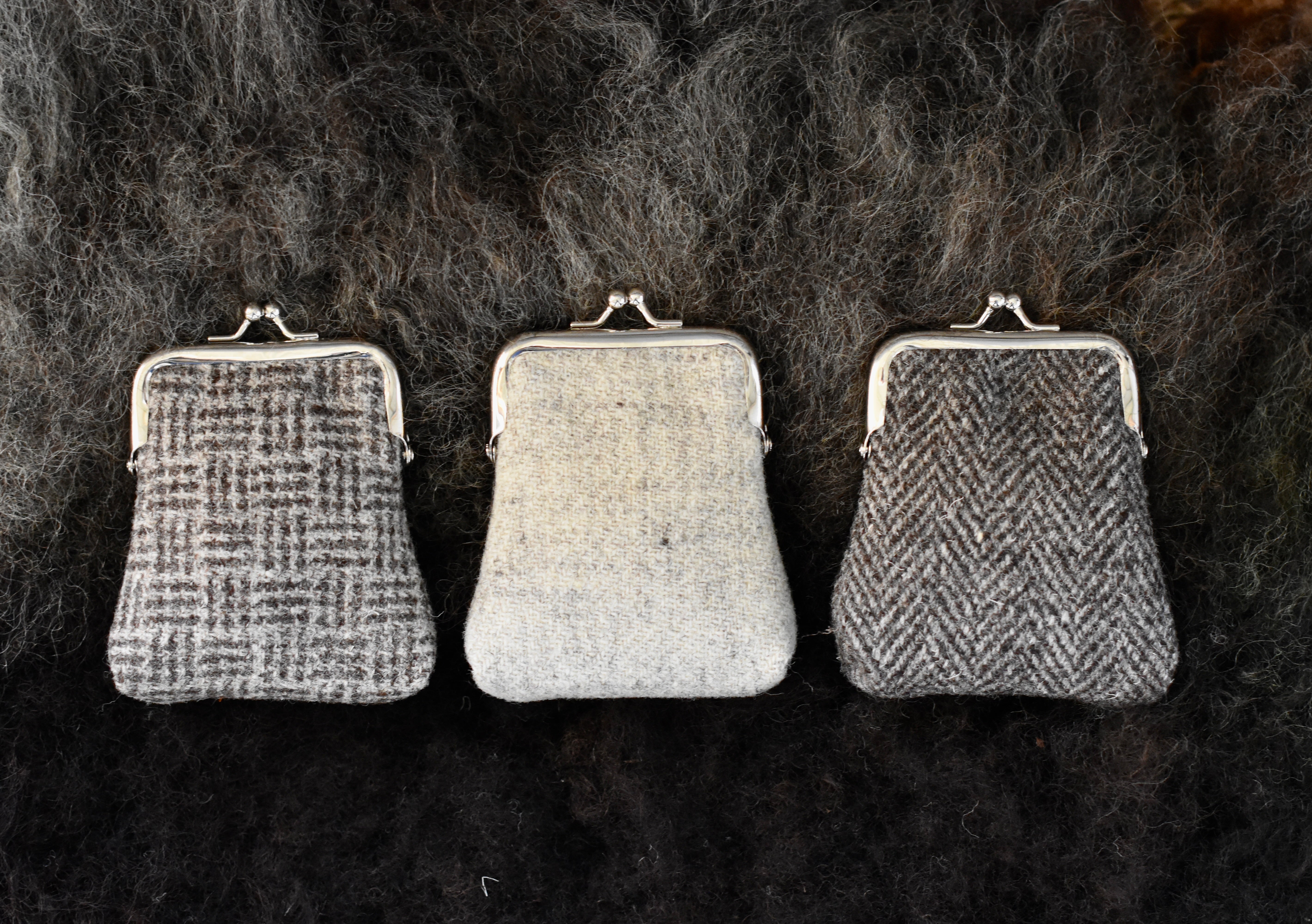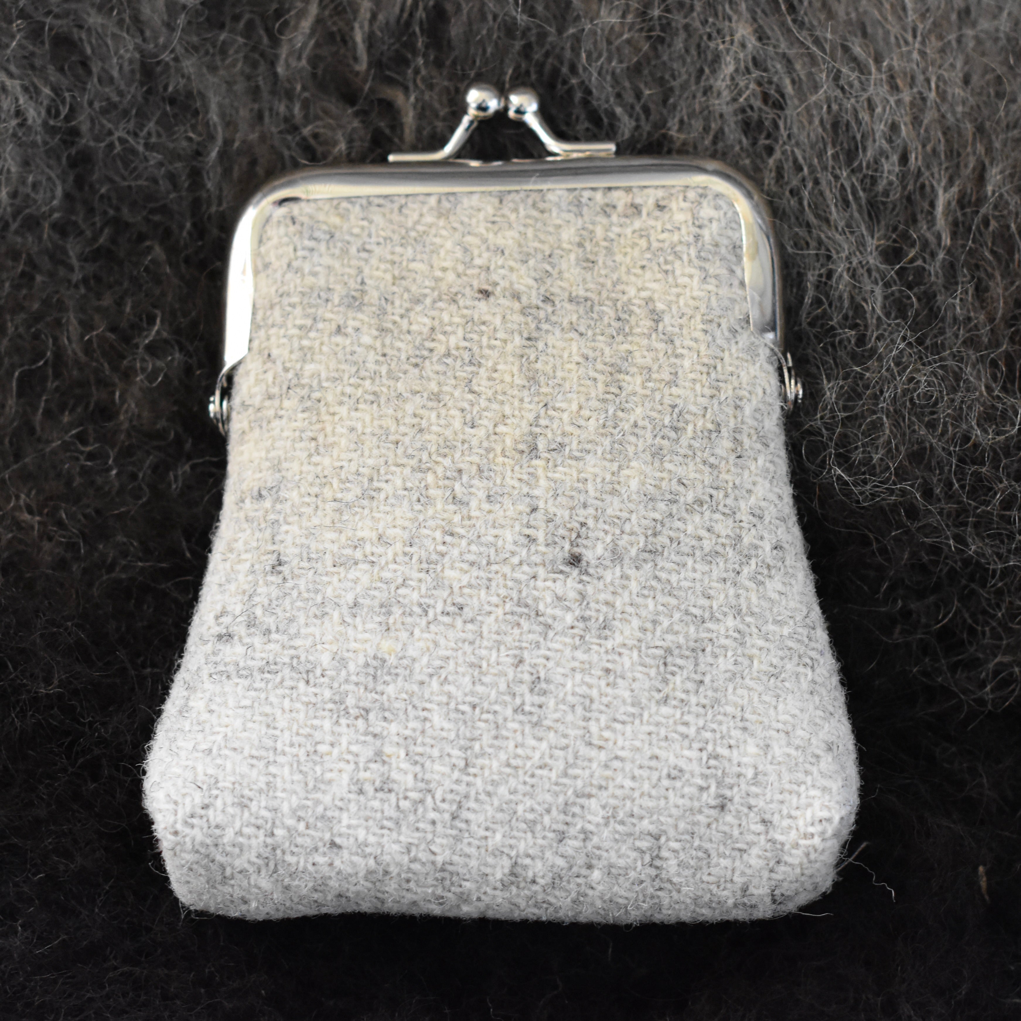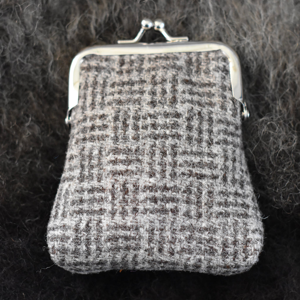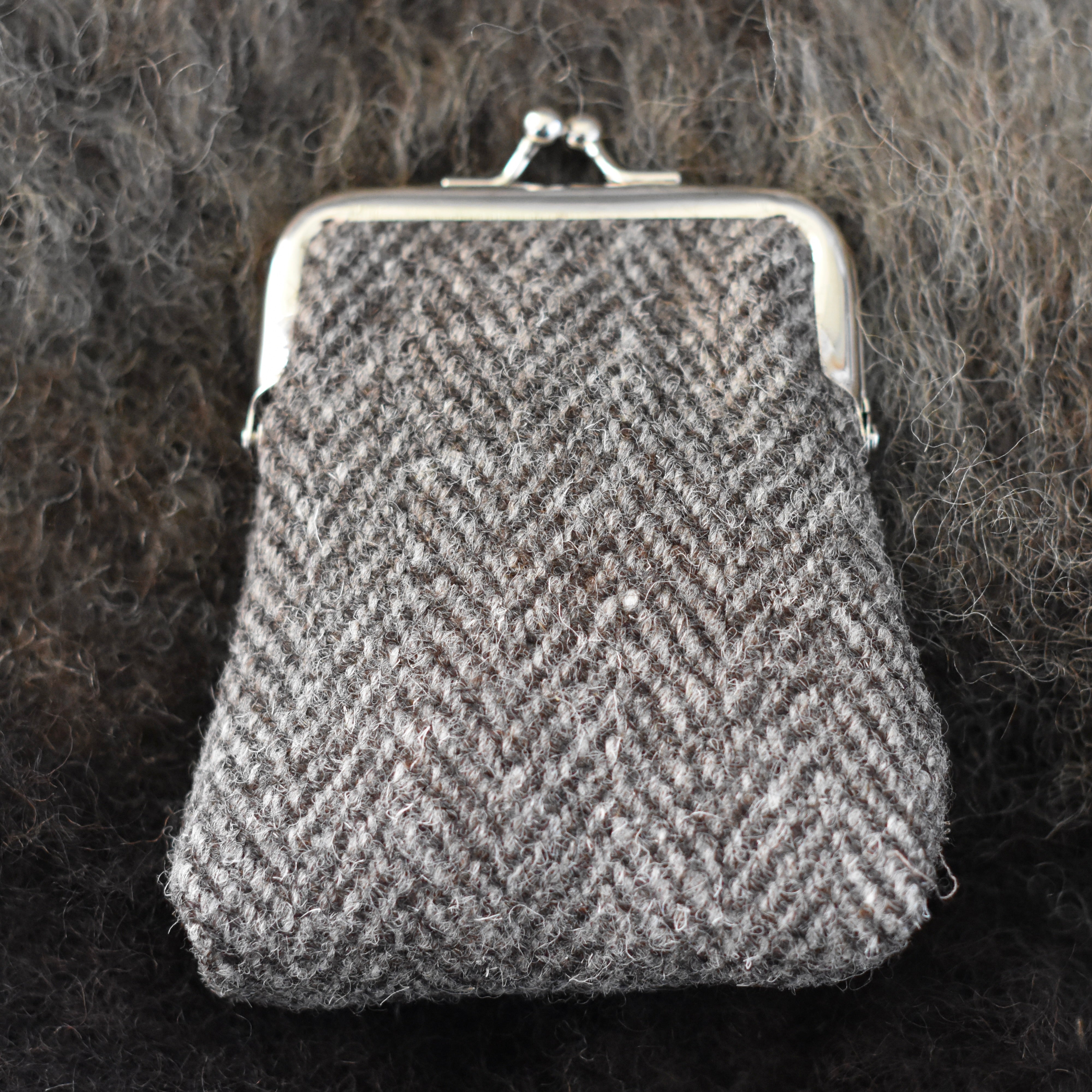 There are three Harris Tweed options available for this compact retro-style coin purse.  The classic dark herringbone of SGADAN/Herring; the striking cross-hatch of CLIABH/Creel and the light, bright tones of SALANN/Salt.