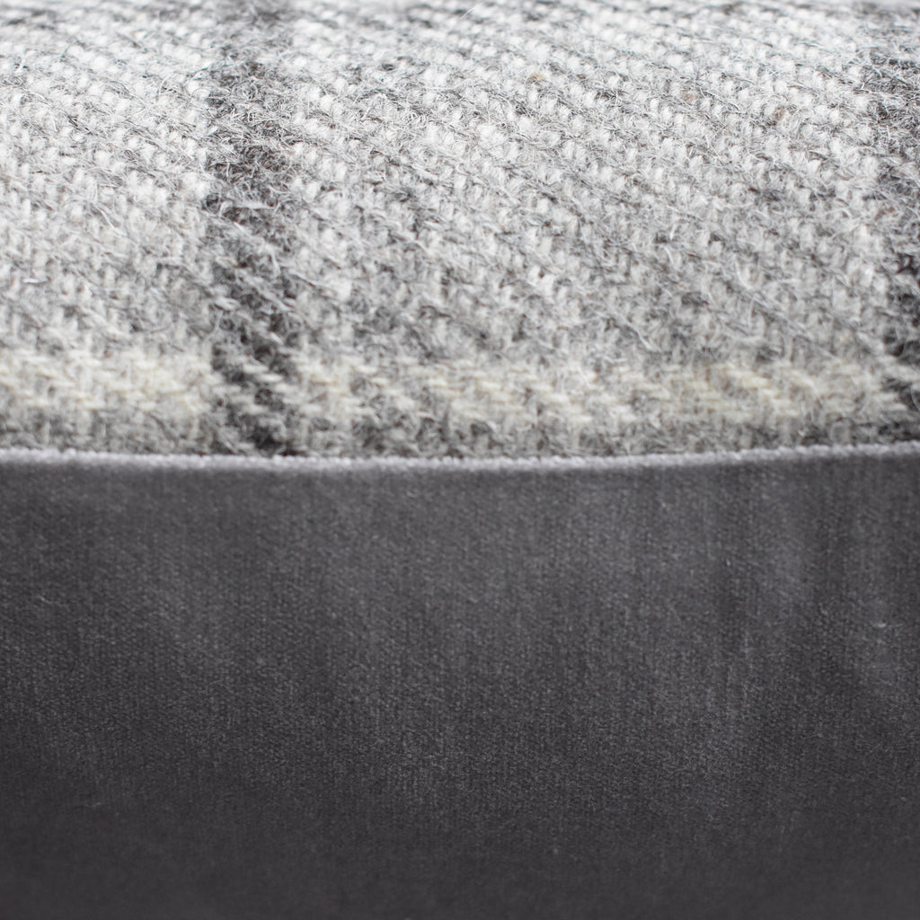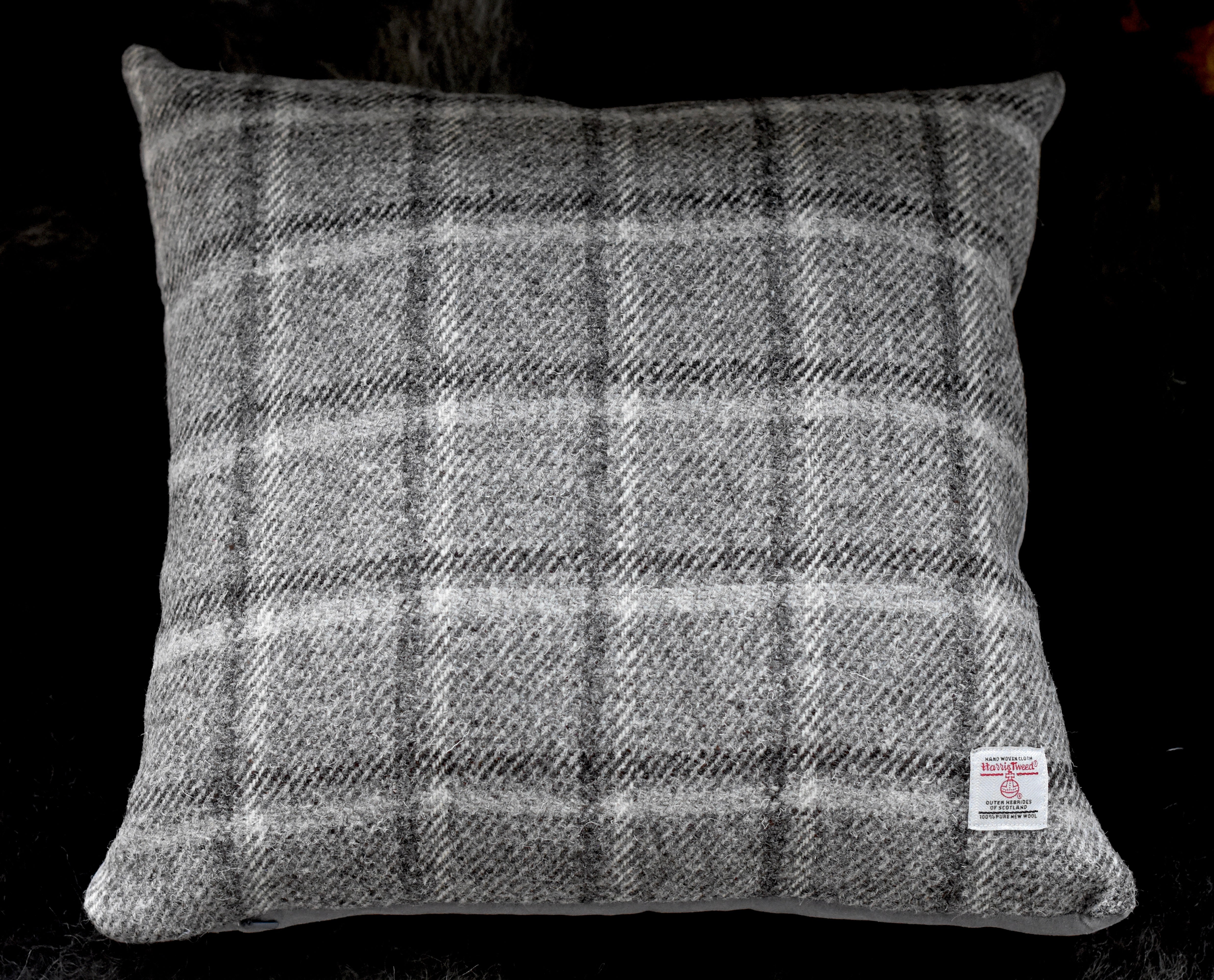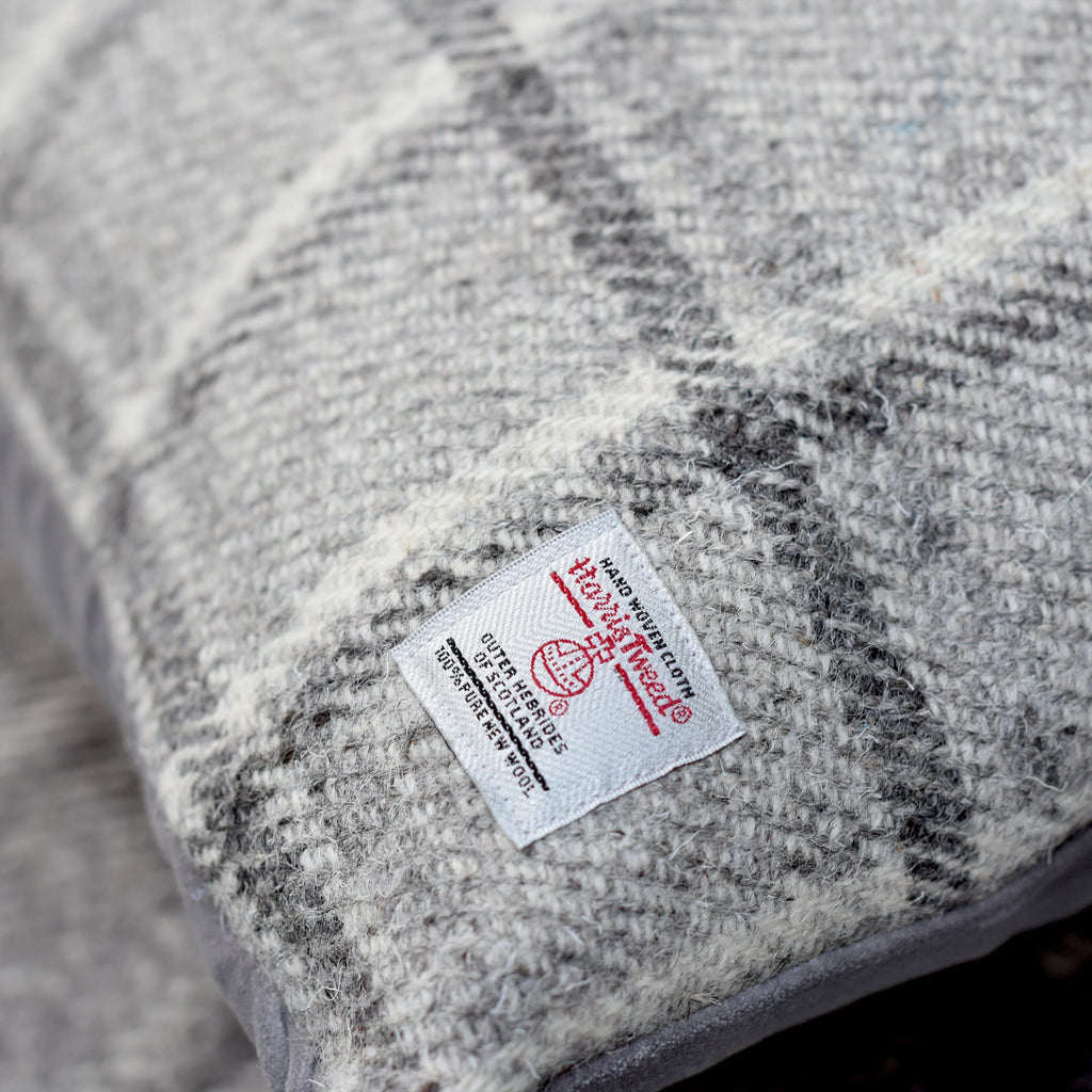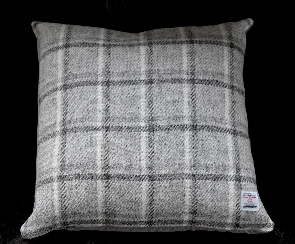 Two bold check cushion designs in natural, un-dyed Harris Tweed.