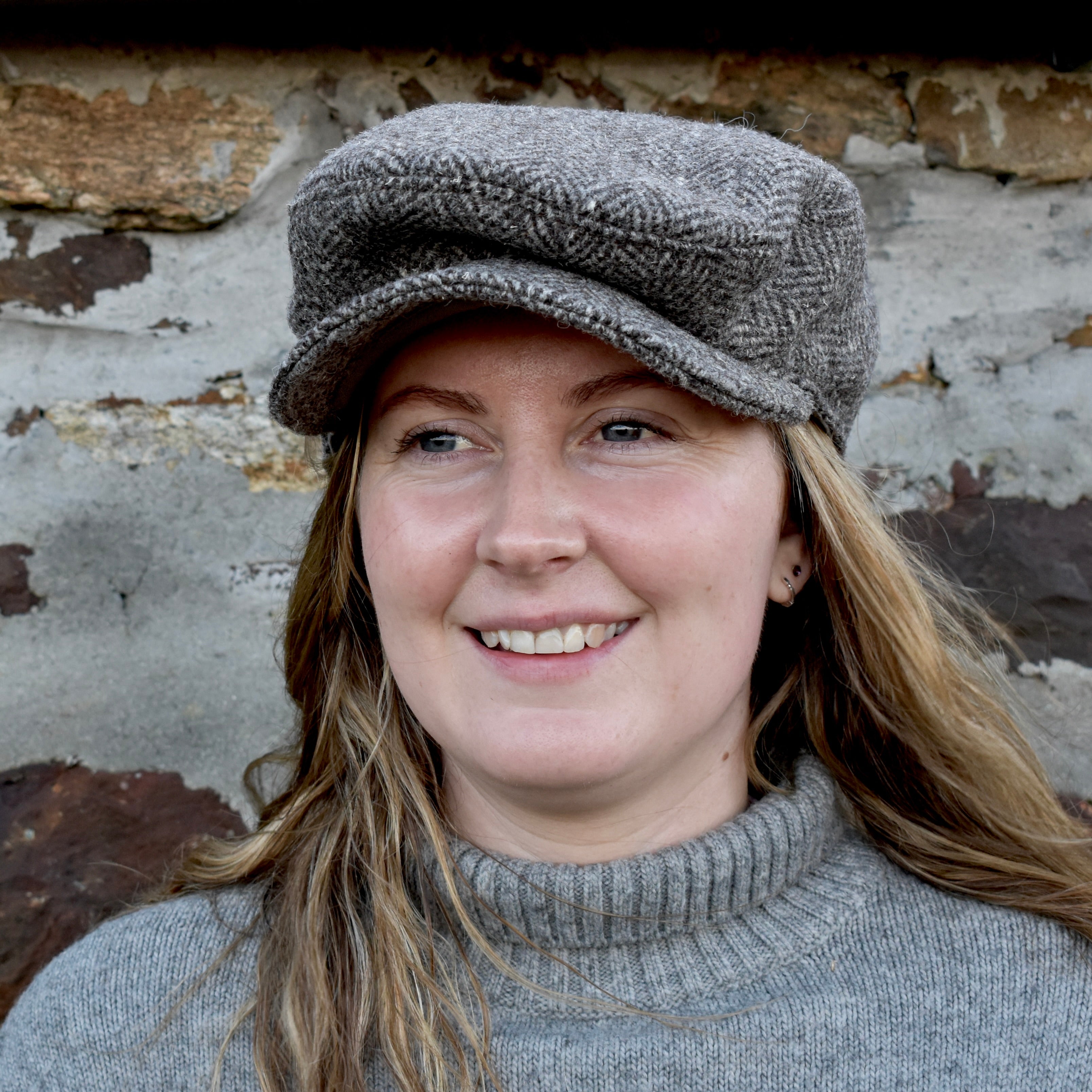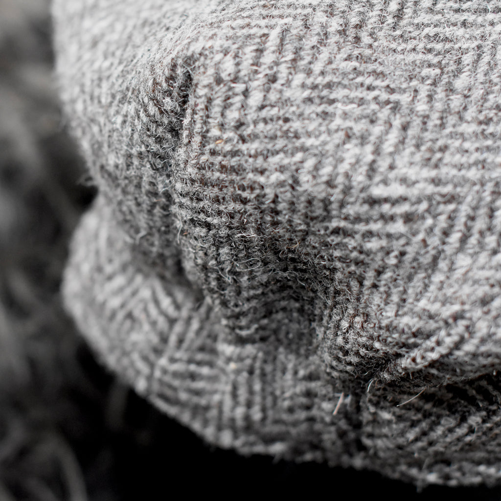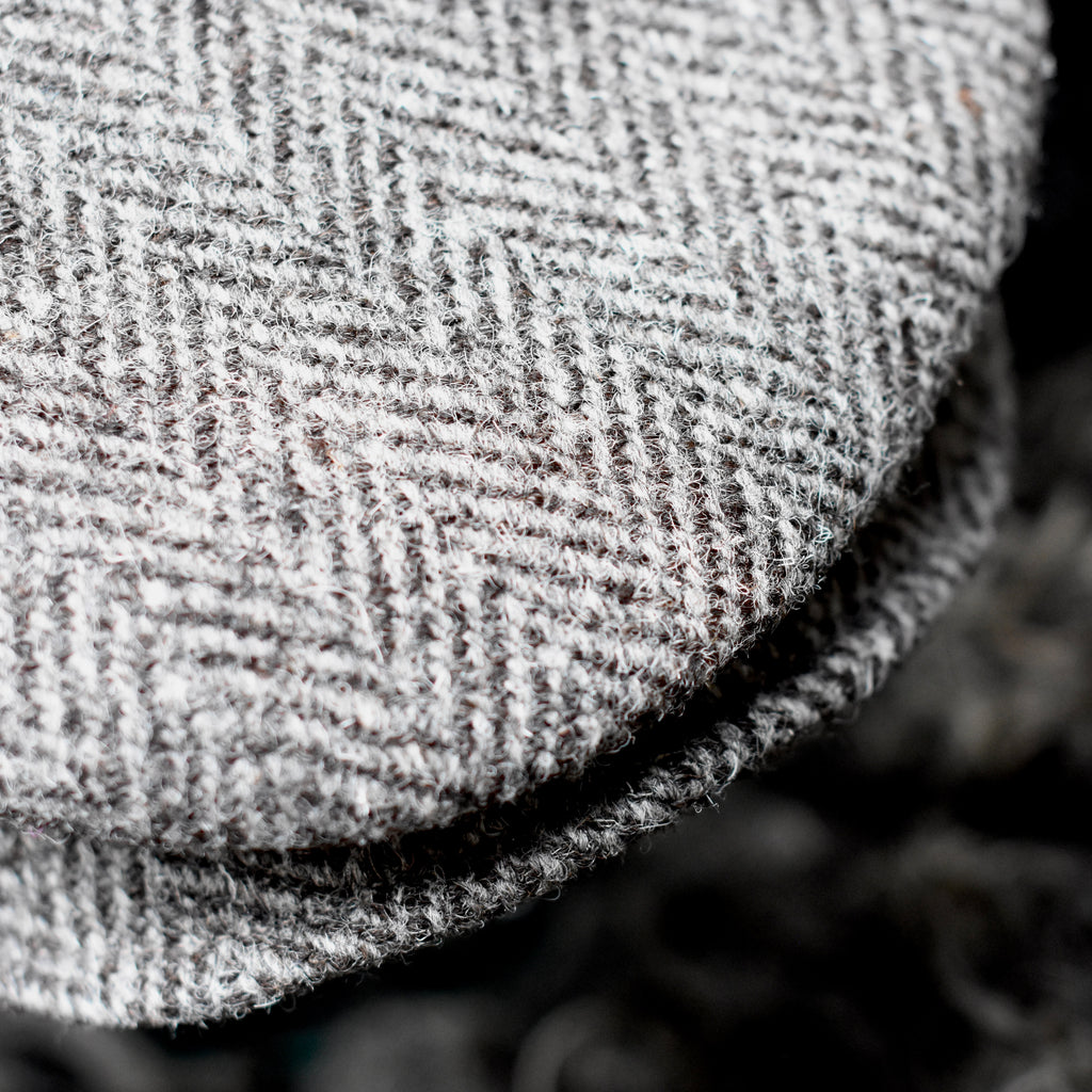 Classic cap in SGADAN/Herring, a heavyweight herringbone Harris Tweed of dark and light chevrons.