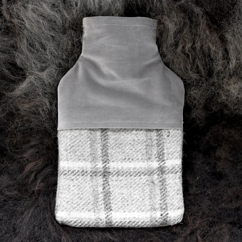 Hot water bottle + Harris Tweed + cotton velvet = Cosy Comfort!