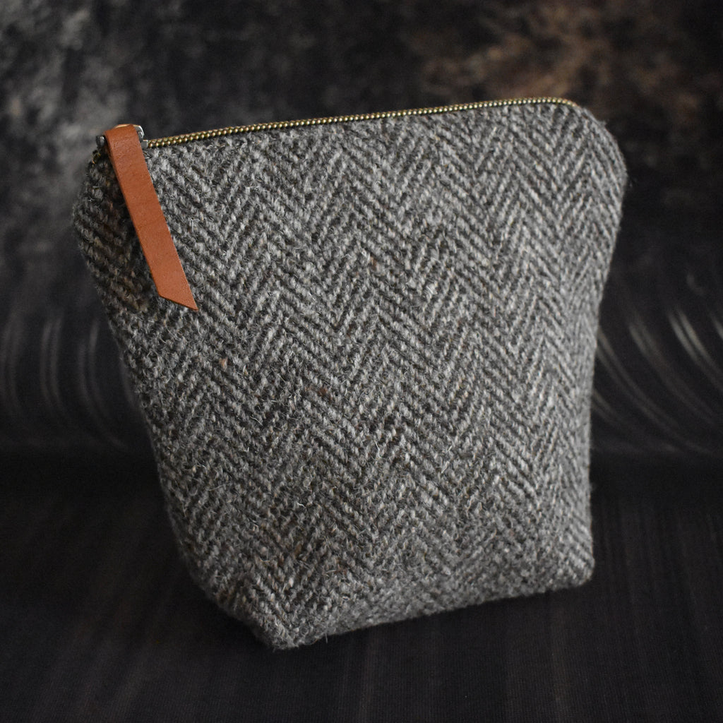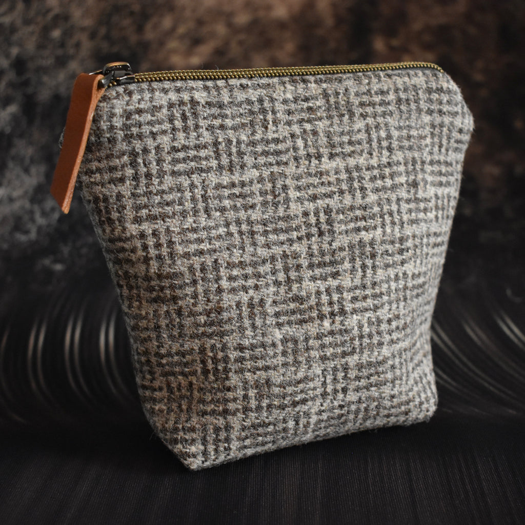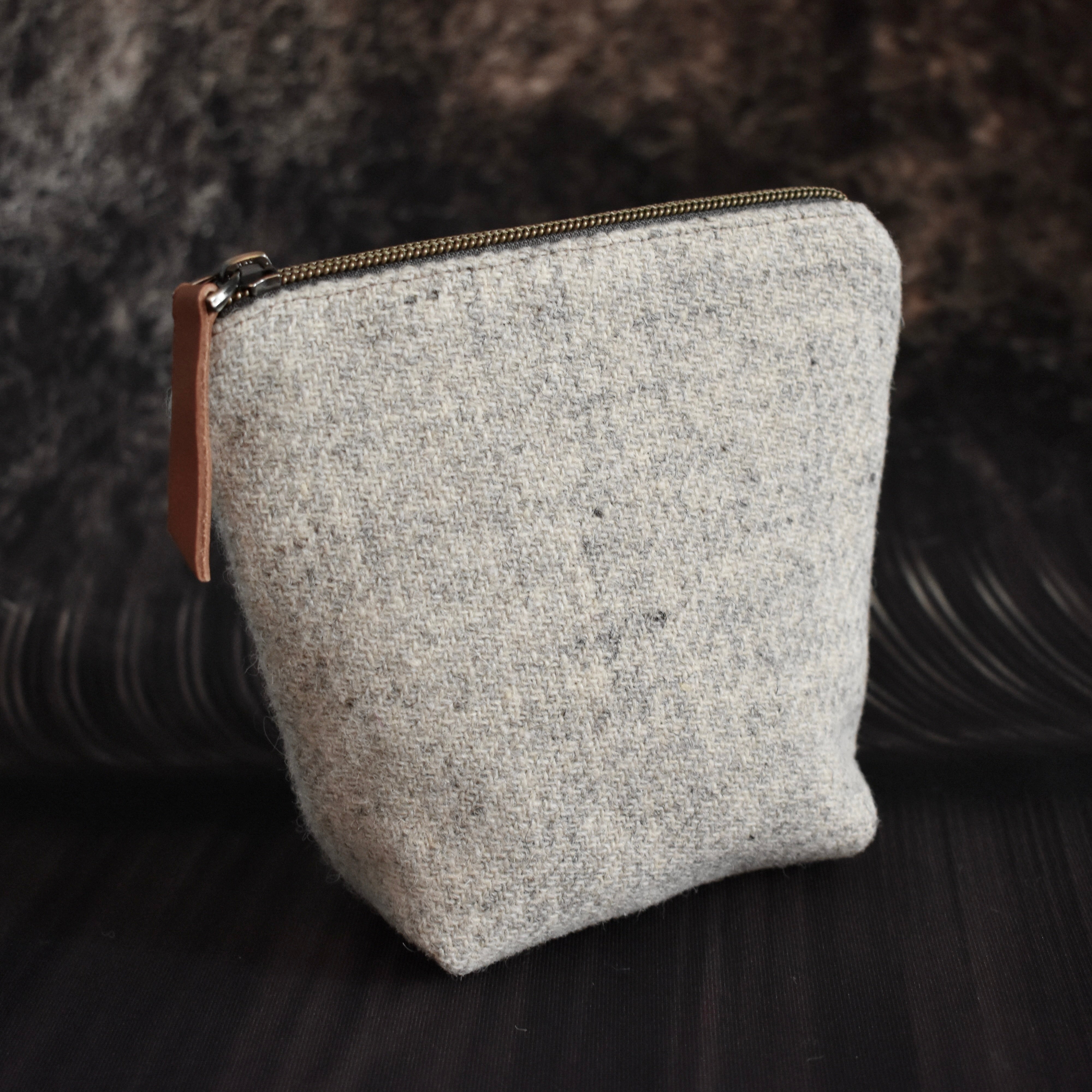 There are three Harris Tweed options available for this neat little bag.  The classic dark herringbone of SGADAN/Herring; the striking cross-hatch of CLIABH/Creel and the light, bright tones of SALANN/Salt.